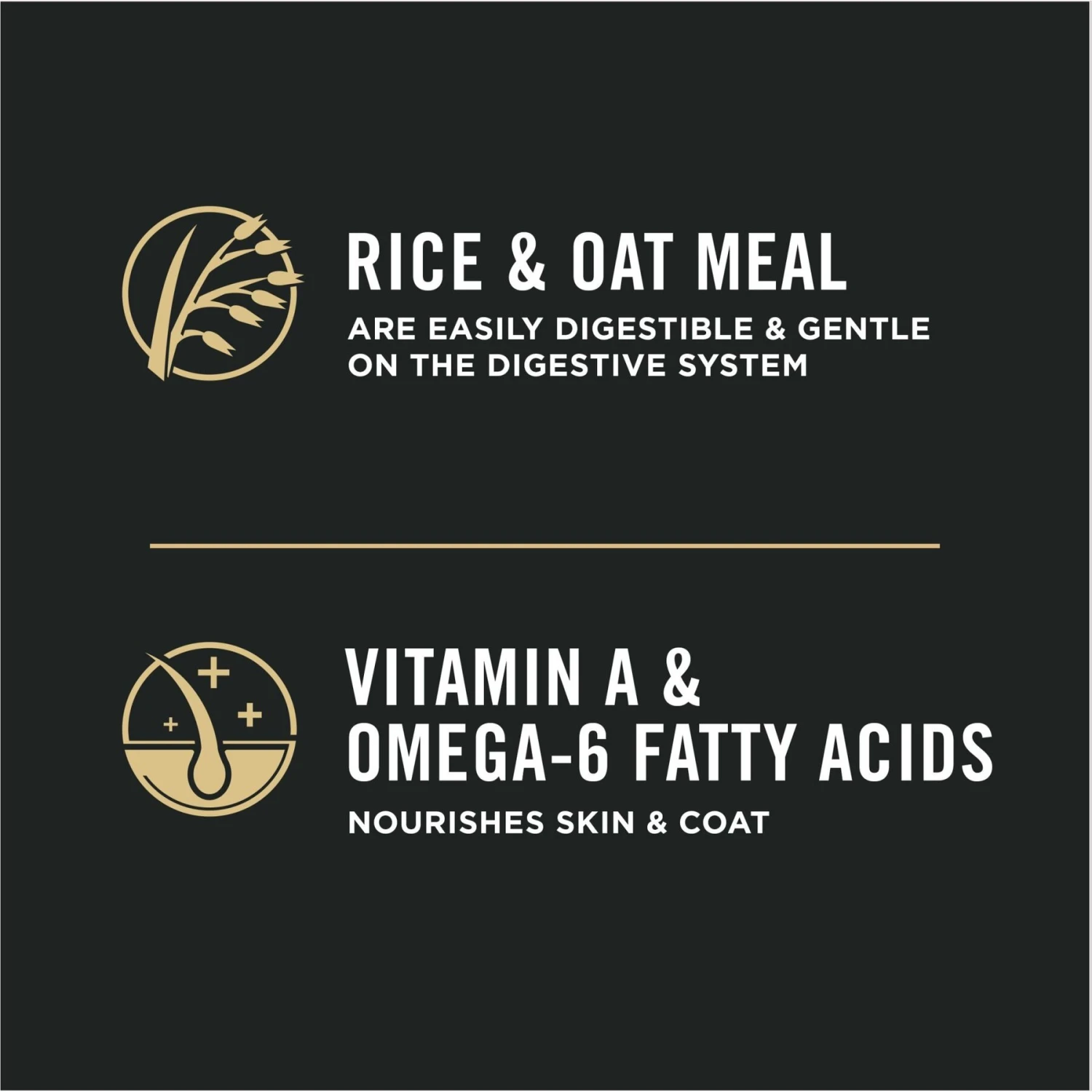 - Rice and oat meal are easily digestible and gentle on the digestive system