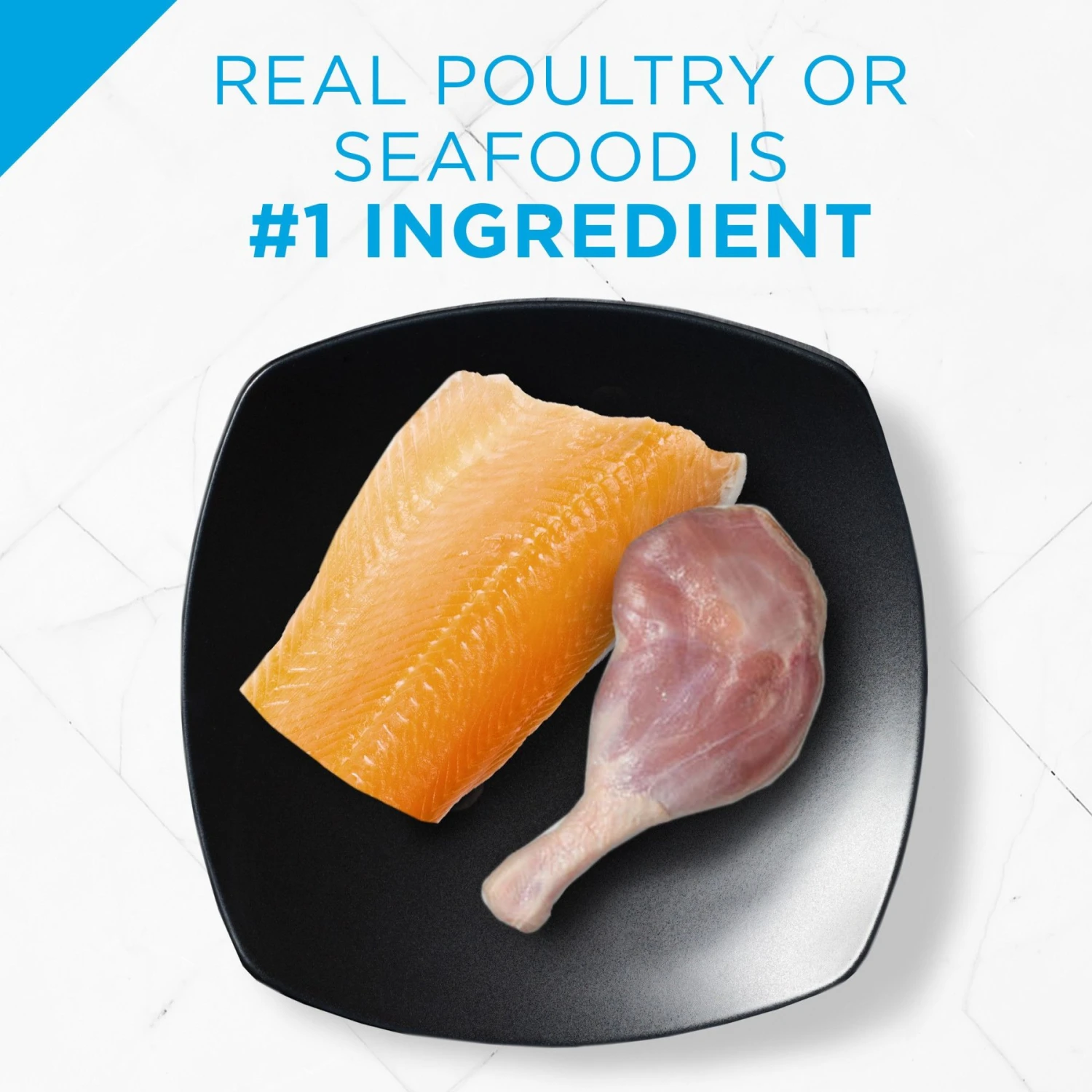 - Real duck or fish is the number one ingredient in each tasty adult cat food entree, helping deliver high-quality protein and a taste cats adore.