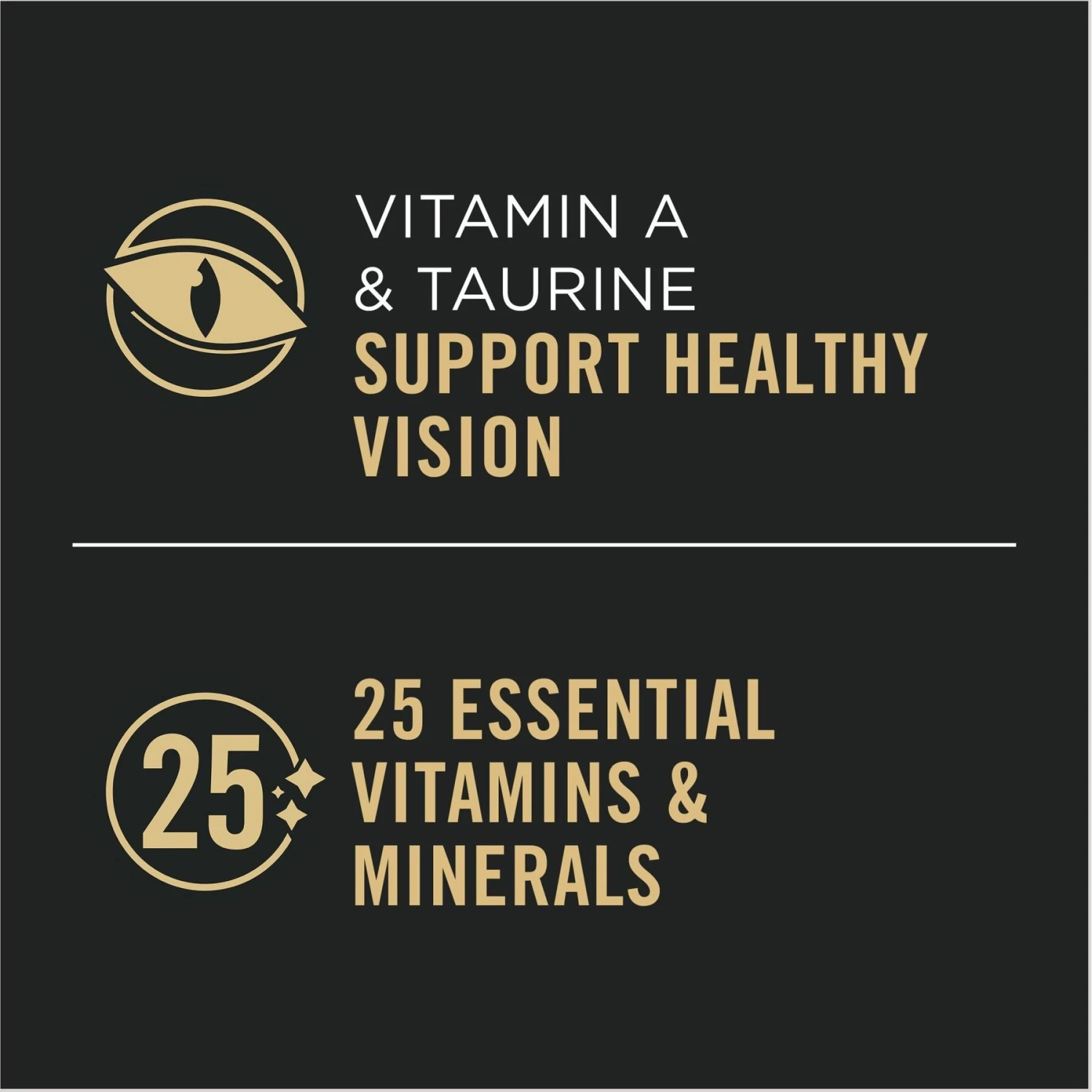 - Formulated with 25 essential vitamins and minerals plus taurine to help support your pal’s overall health and well-being.