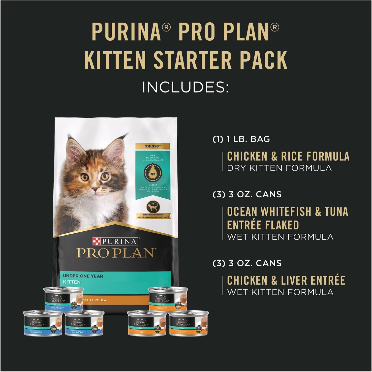 - This variety pack includes 3 recipes that are crafted with high-quality ingredients. Choose from Chicken and Rice, Ocean Whitefish and Tuna or Chicken and Liver kitten formulas!