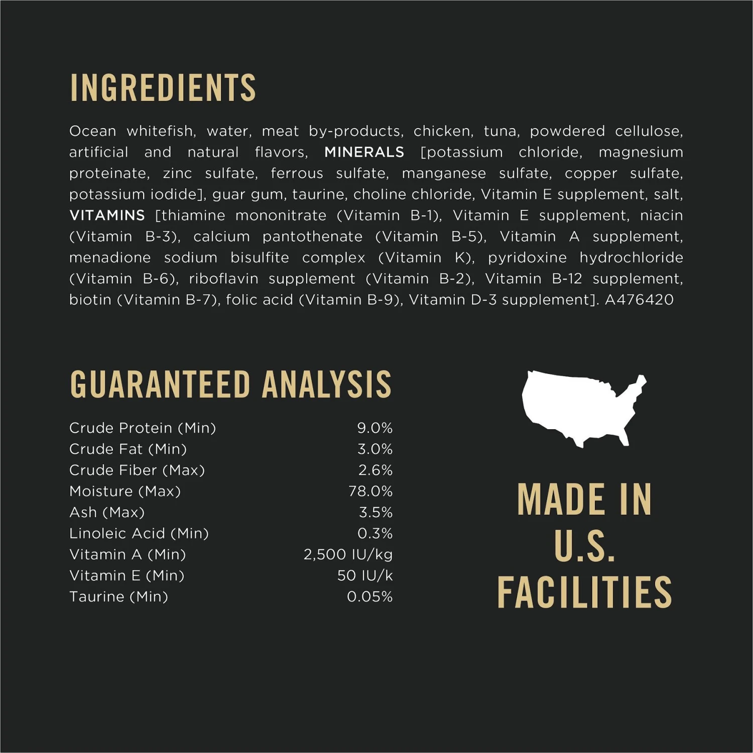 - With real ocean whitefish and tuna, this high-protein cat food delivers a combo of nutrition and flavor for meals both you and your cat can love.