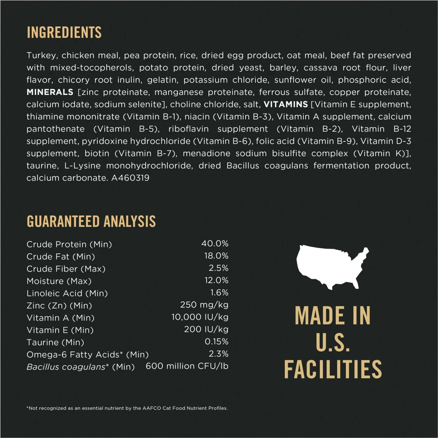 - Real turkey is the #1 ingredient, helping create a high protein dry cat food made with quality ingredients.