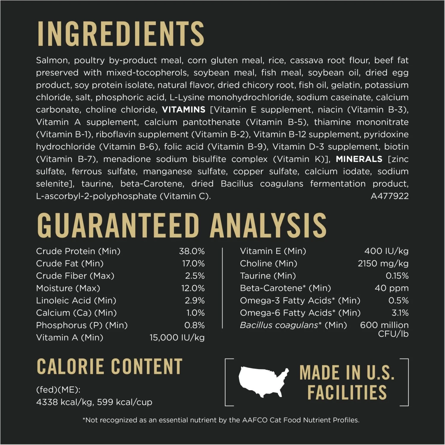 - Advanced 4-in-1 formula senior cat food features salmon as the #1 ingredient.