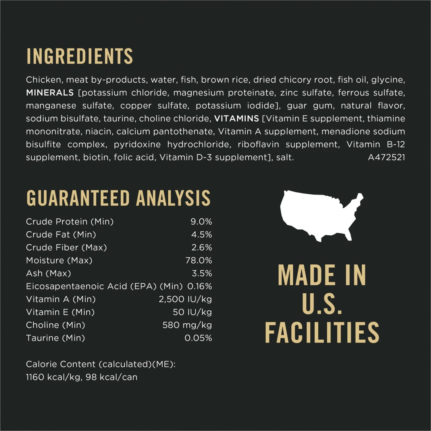 - This wet food for cats is proudly manufactured at Purina-owned US facilities.