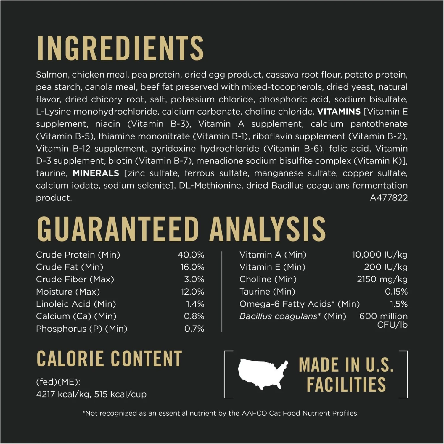 - High protein real salmon and egg formula supports your pet’s muscle and heart health.