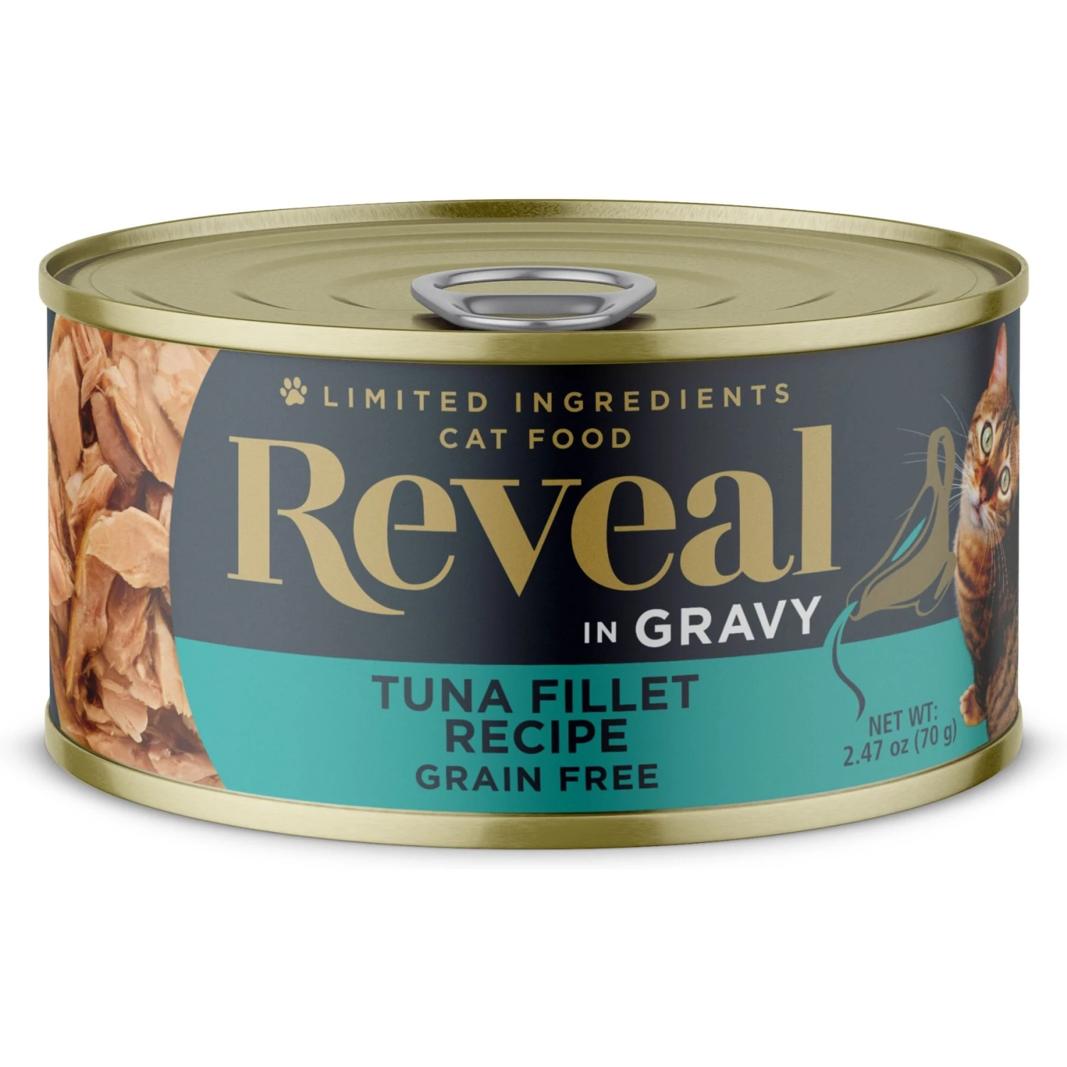 Reveal Natural Grain-Free Tuna in Gravy Flavored Wet Cat Food, 2.47-oz can, case of 24—Reveal Natural Wet Cat Food is packed with real tuna fillet for paw-some protein. Crafted with limited ingredients, this grain-free food is purr-fect for kitties with food sensitivities. It’s free of artificial colors, flavors, preservatives and other bad stuff. Instead, it’s made with delicious, natural ingredients your furbaby will love. You can feed this wet food as a compliment to any dry food (sold separately) for a complete and balanced diet.