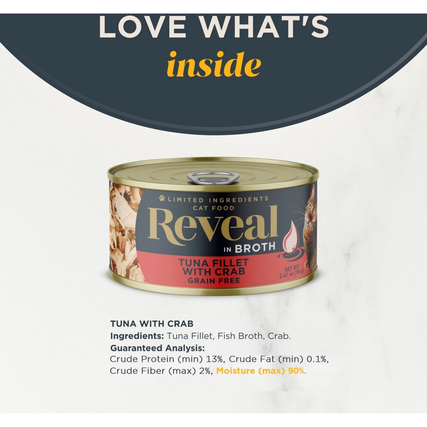 Be the first to review “Reveal Natural Grain-Free Tuna With Crab In Broth Flavored Wet Cat Food, 2.47-oz Can, Case Of 24” Cancel reply