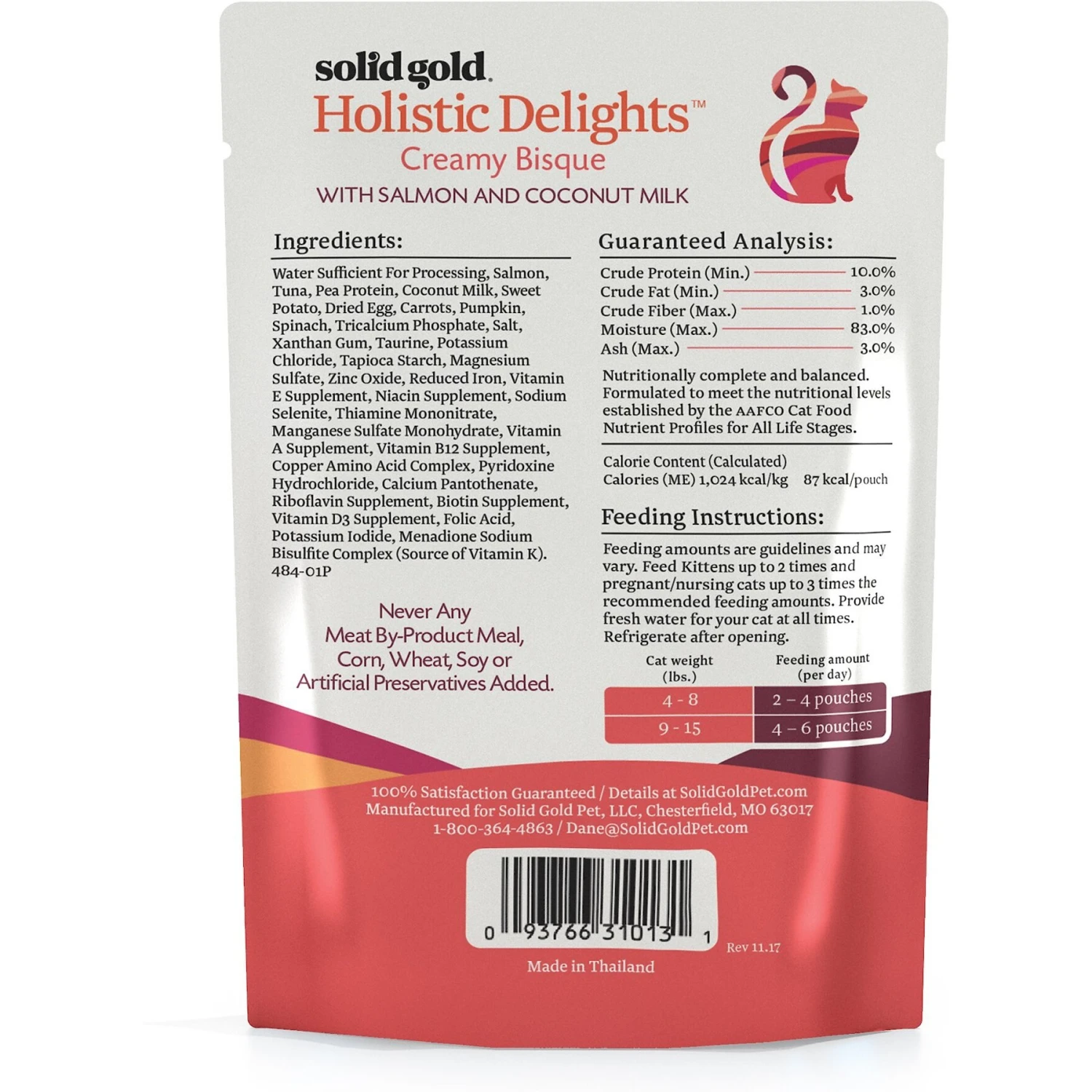 - Holistic formula with high-protein salmon in a paw-licking and filling bisque made with wholesome coconut milk.