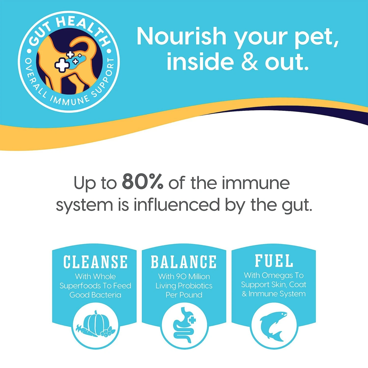 - Features probiotic support for gut health.