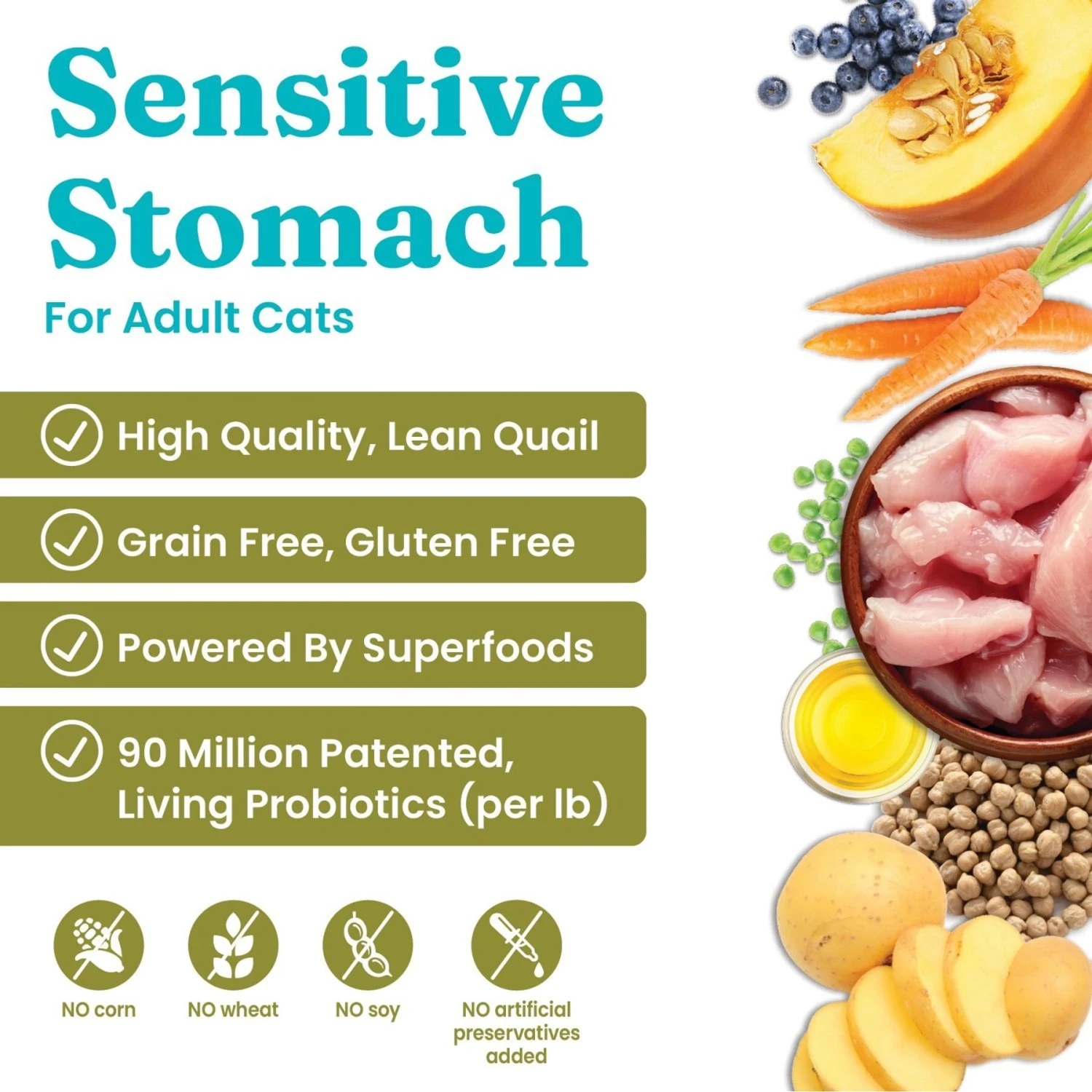 - This cat dry food contains functional superfoods like carrots and pumpkin to provide antioxidants and fiber, while omega fatty acids support a healthy coat and probiotics bolster your kitty’s digestive health.