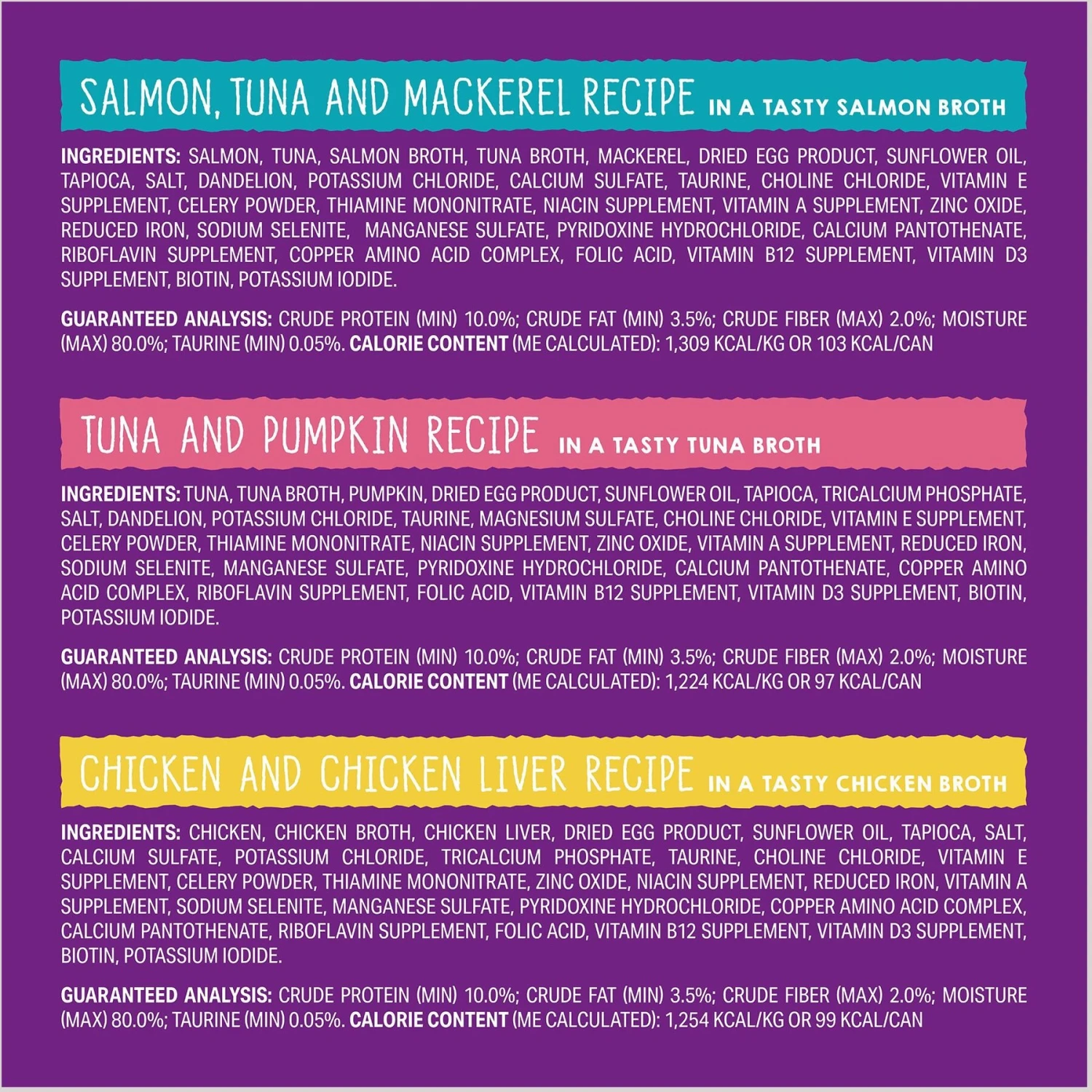 - These tasty pates are filled with animal proteins and soaked in irresistible, nutrient-rich bone broth—this variety pack offers two of each flavor, so your cat can find their favorite!