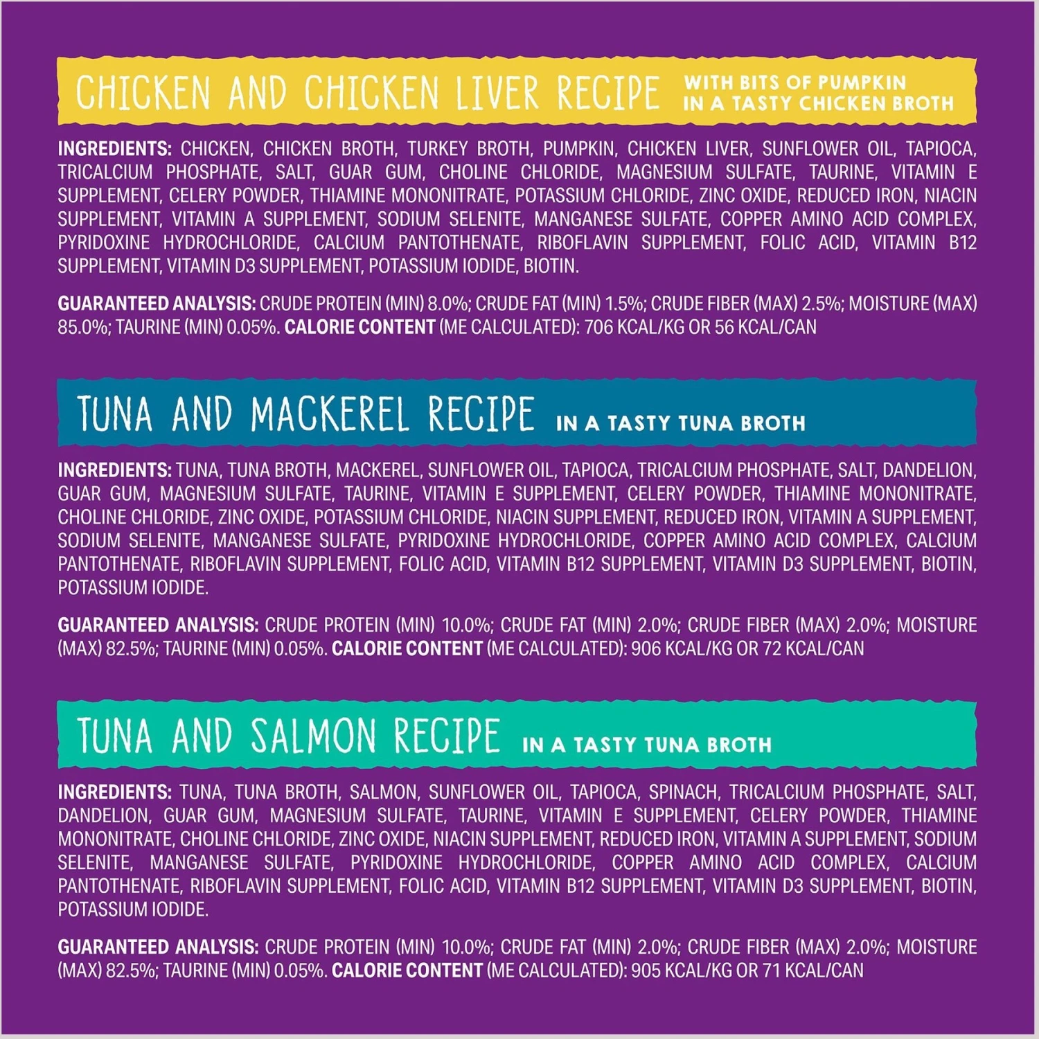 - Shredded muscle meat slowly simmered in a savory broth with bits of pumpkin delivers a special meal that will get your cat purring!