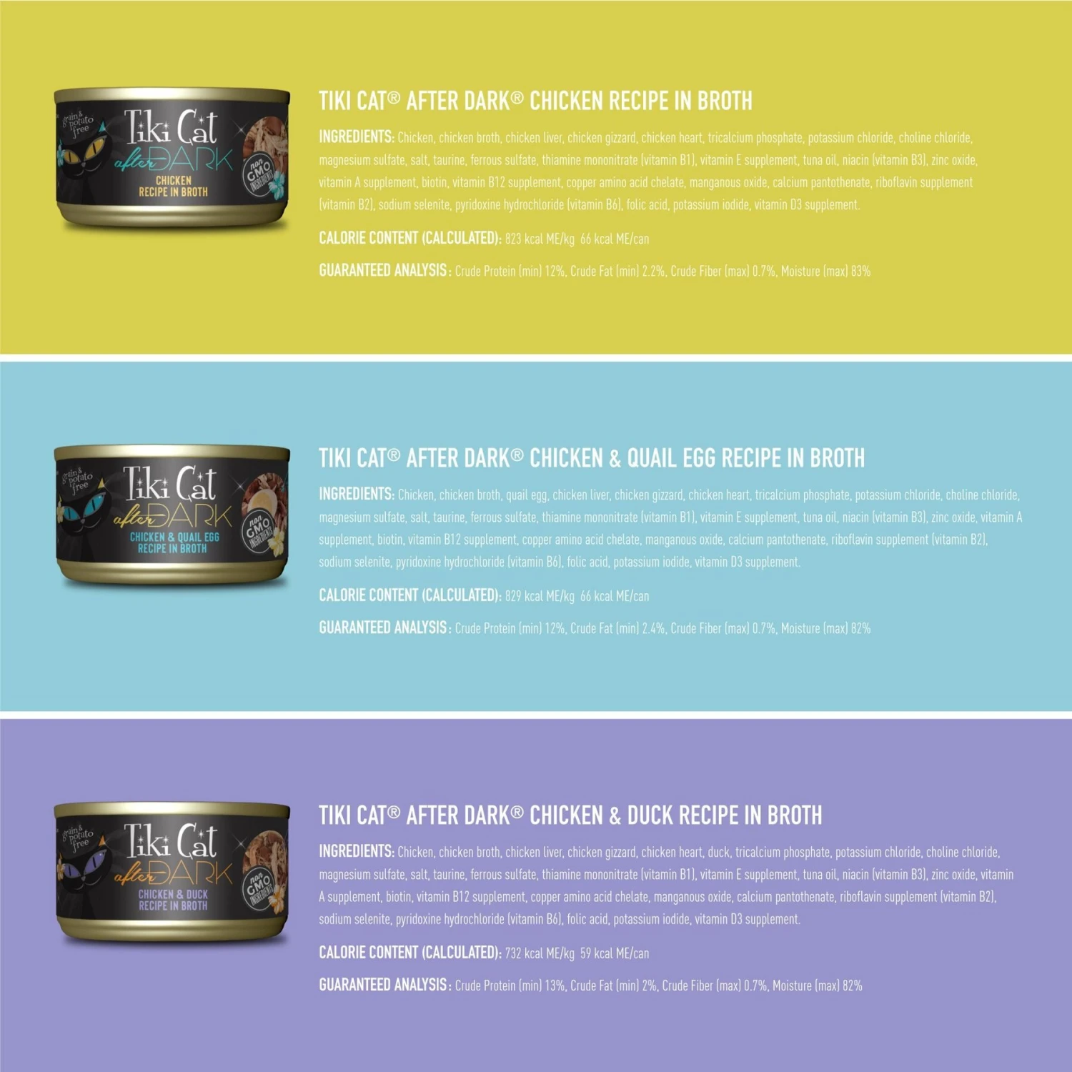 Be the first to review “Tiki Cat After Dark Variety Pack Grain-Free Wet Cat Food, 2.8-oz Tray, Case Of 18” Cancel reply