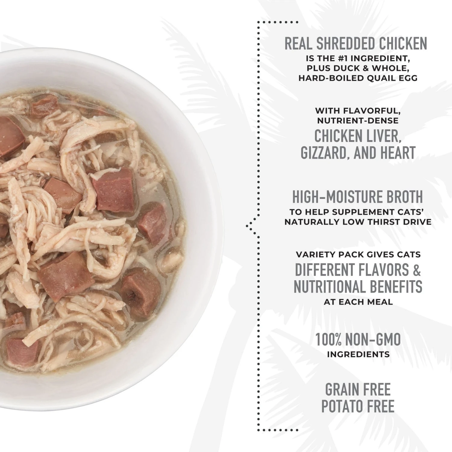 - High protein with real, shredded chicken as the first ingredient, plus duck and whole, hard-boiled quail eggs for paw-some flavor.