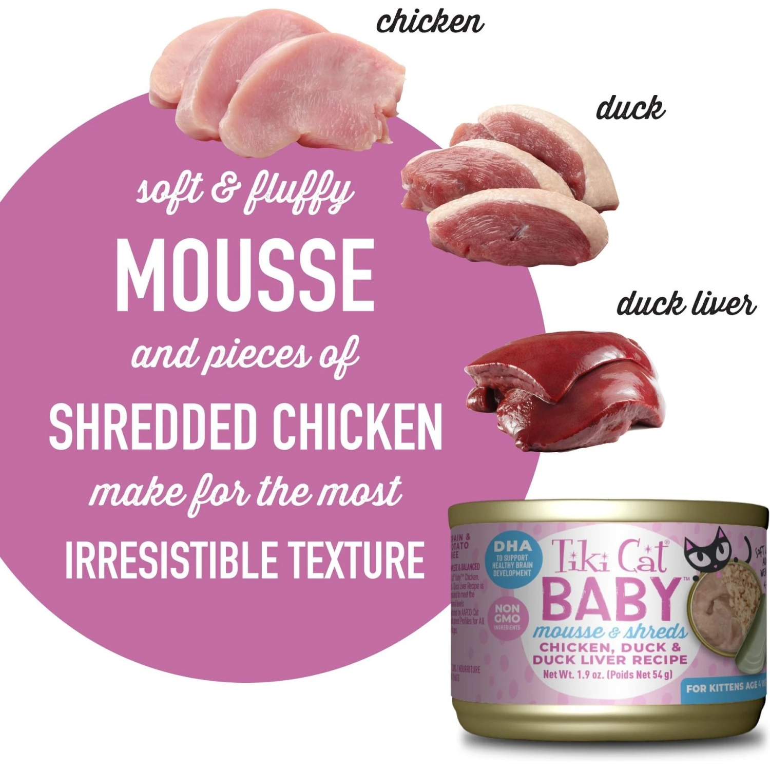 Be the first to review “Tiki Cat Baby Chicken, Duck & Duck Liver Mousse & Shreds Grain-Free Wet Cat Food, 1.9-oz Can, Case Of 3” Cancel reply