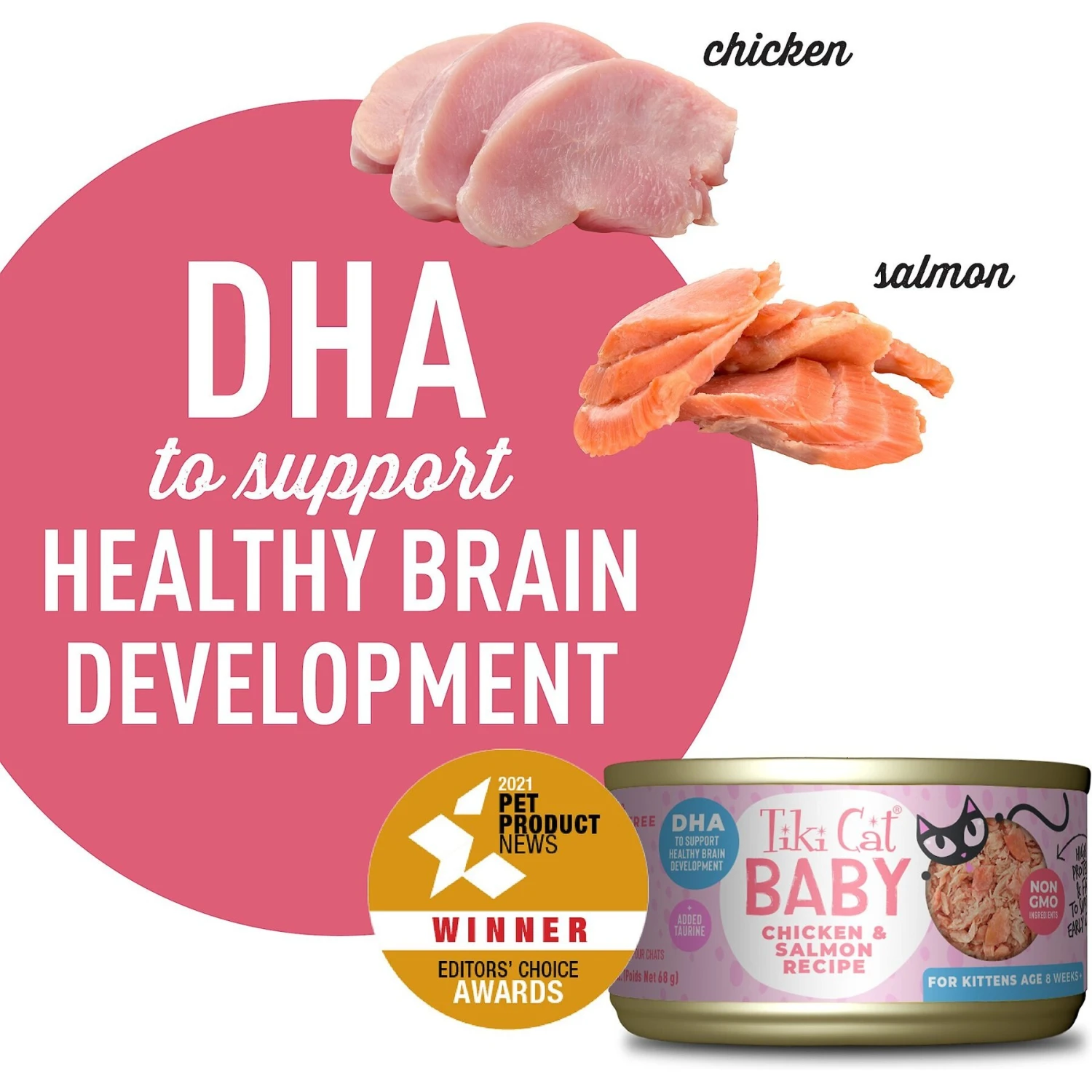 - Made with tender chicken and salmon, the soft texture of this food makes it ideal for weaning kittens.