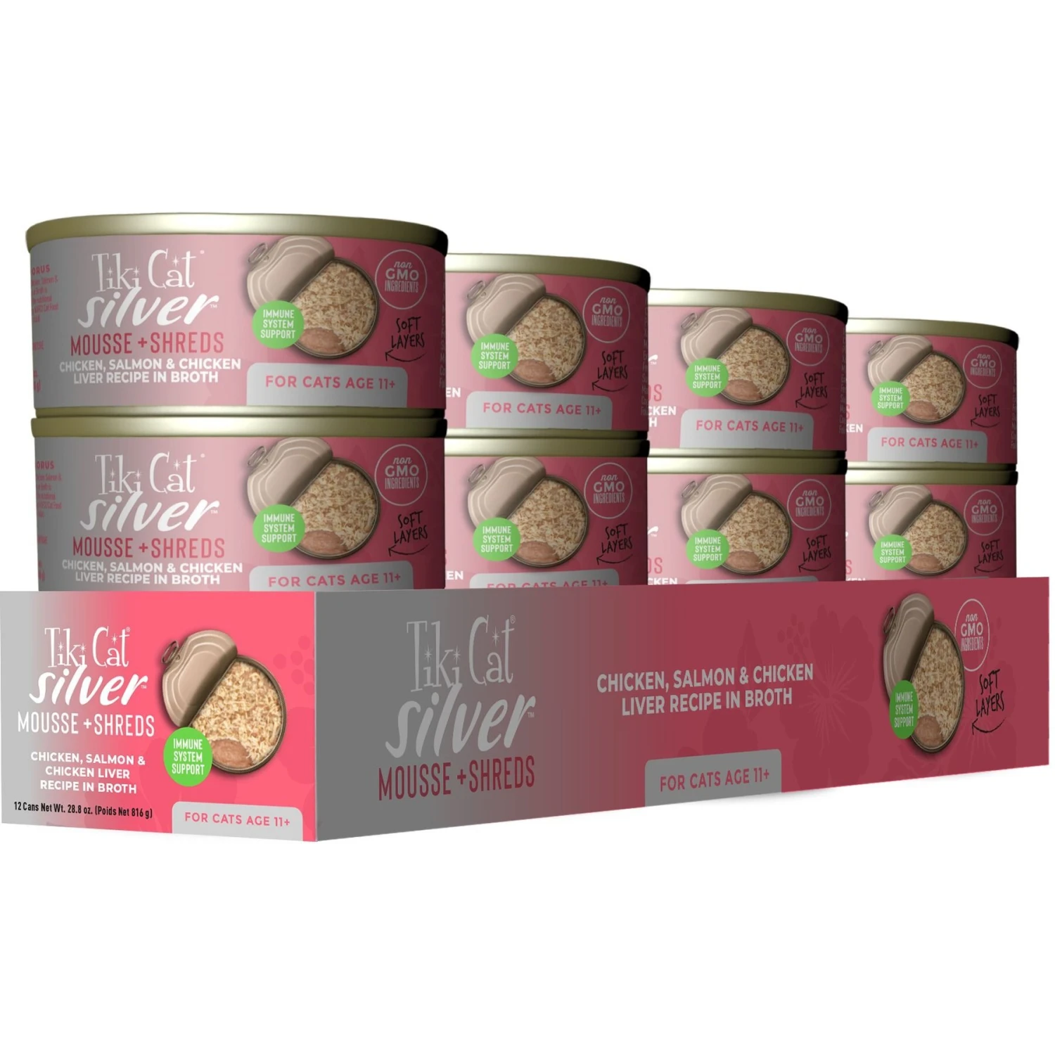 Be the first to review “Tiki Cat Silver Chicken & Chicken Liver Mousse & Shreds Grain-Free Wet Cat Food, 2.4-oz Can, Case Of 12” Cancel reply