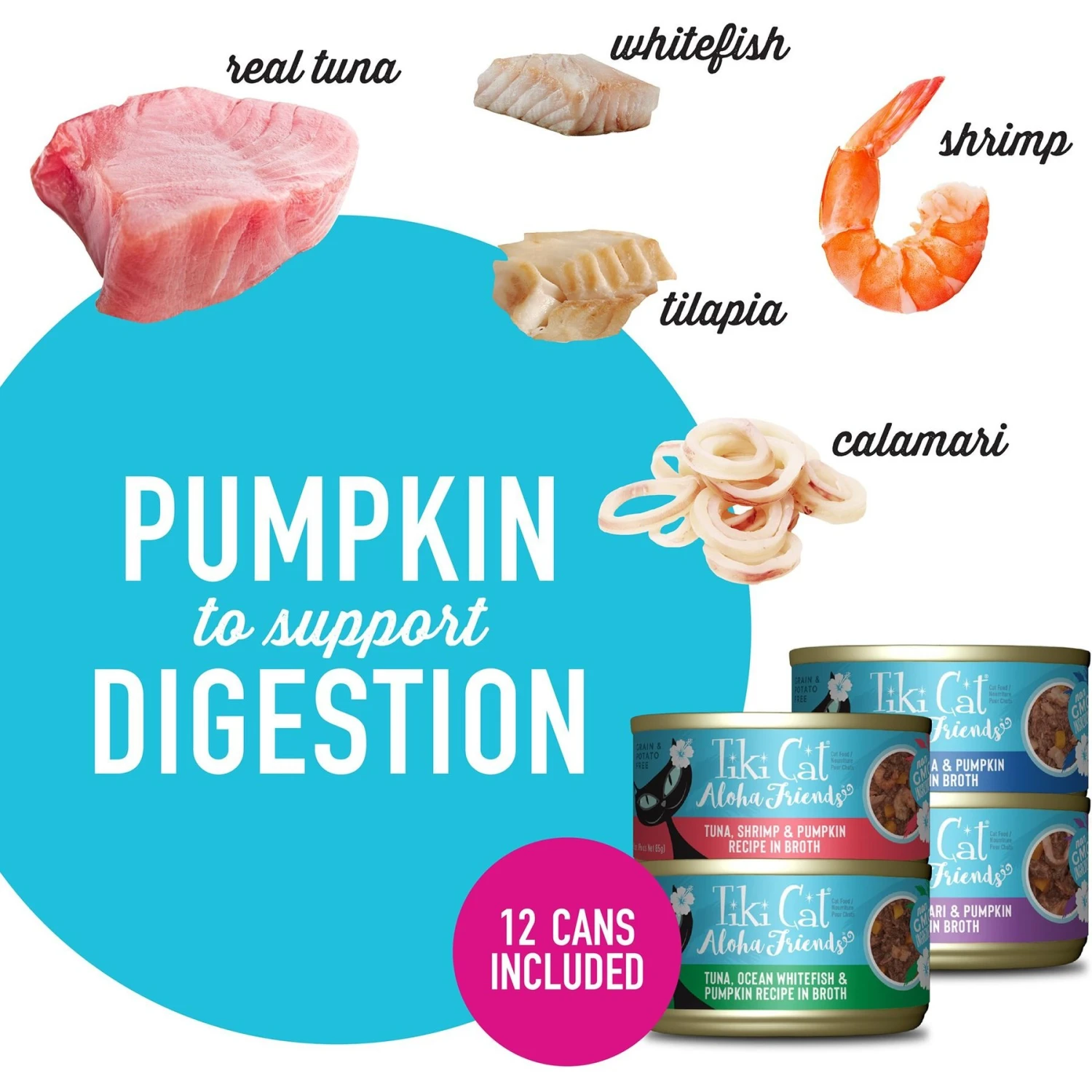 - Variety pack includes recipes with wild-caught flaked tuna, tilapia, and shrimp for the animal-sourced protein carnivores thrive on.