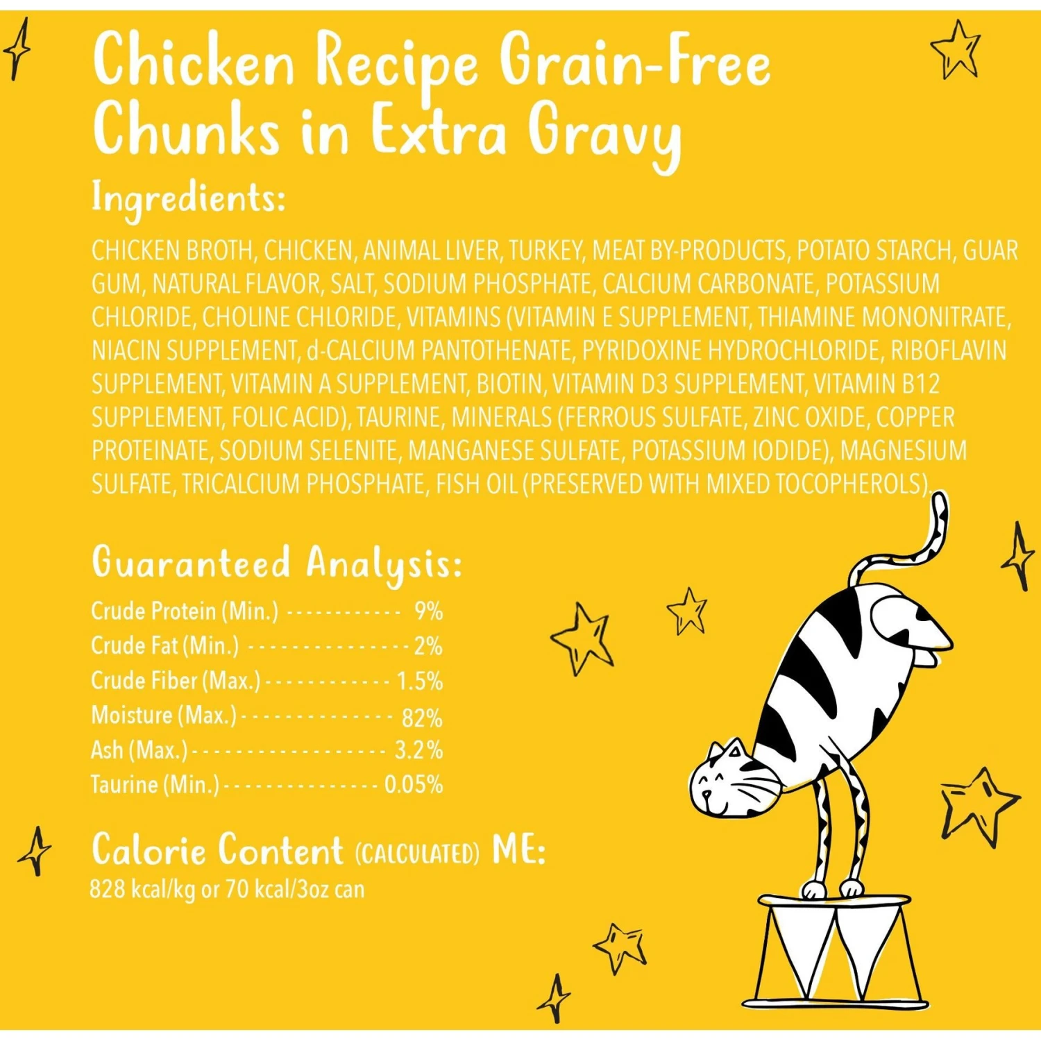- Grain-free recipe with chunks of real chicken as the first ingredient for the protein and flavor cats crave.