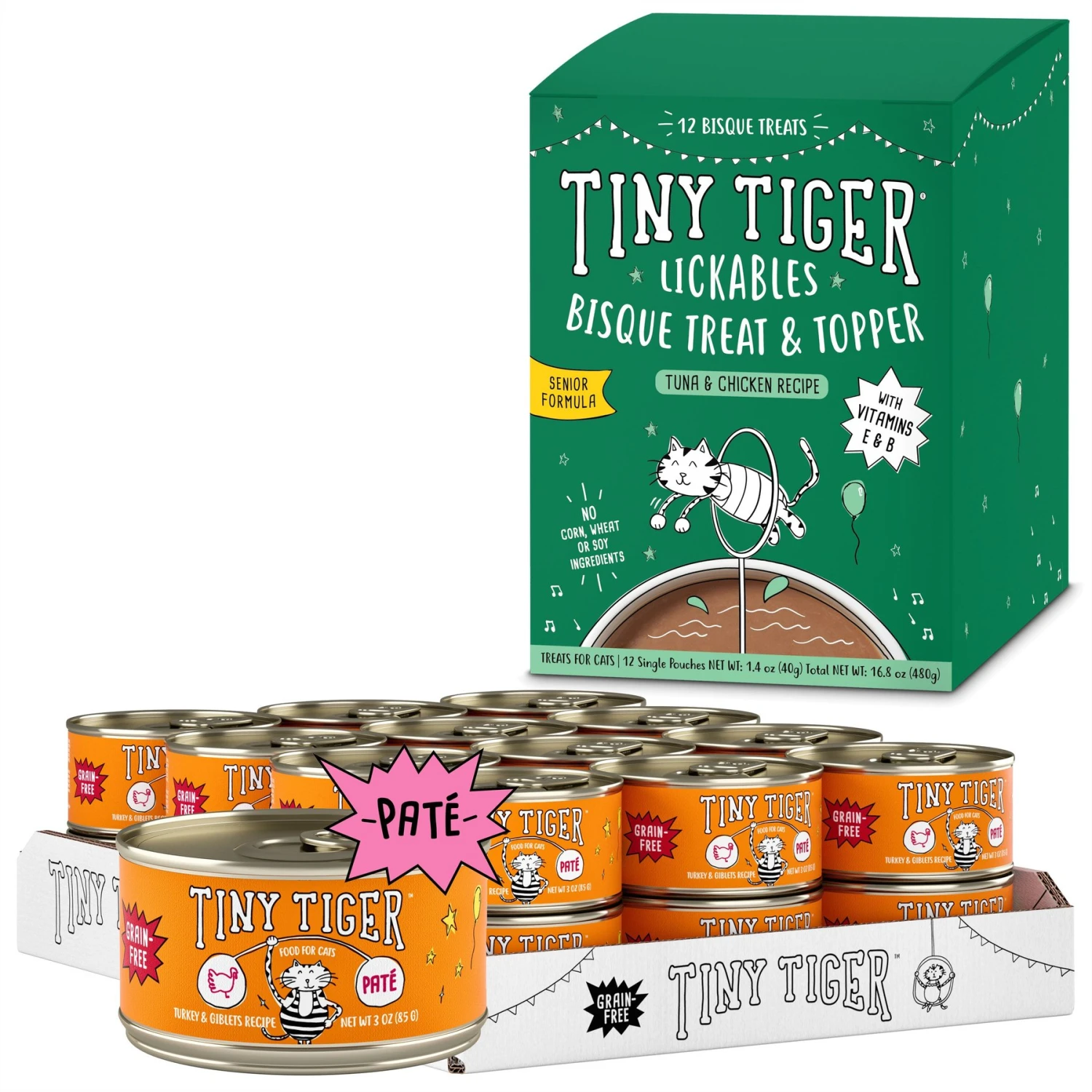 Be the first to review “Tiny Tiger Pate Turkey & Giblets Recipe Grain-Free Canned Cat Food & Tiny Tiger Lickables, Senior Formula, Tuna & Chicken Recipe, Bisque Cat Treat & Topper” Cancel reply
