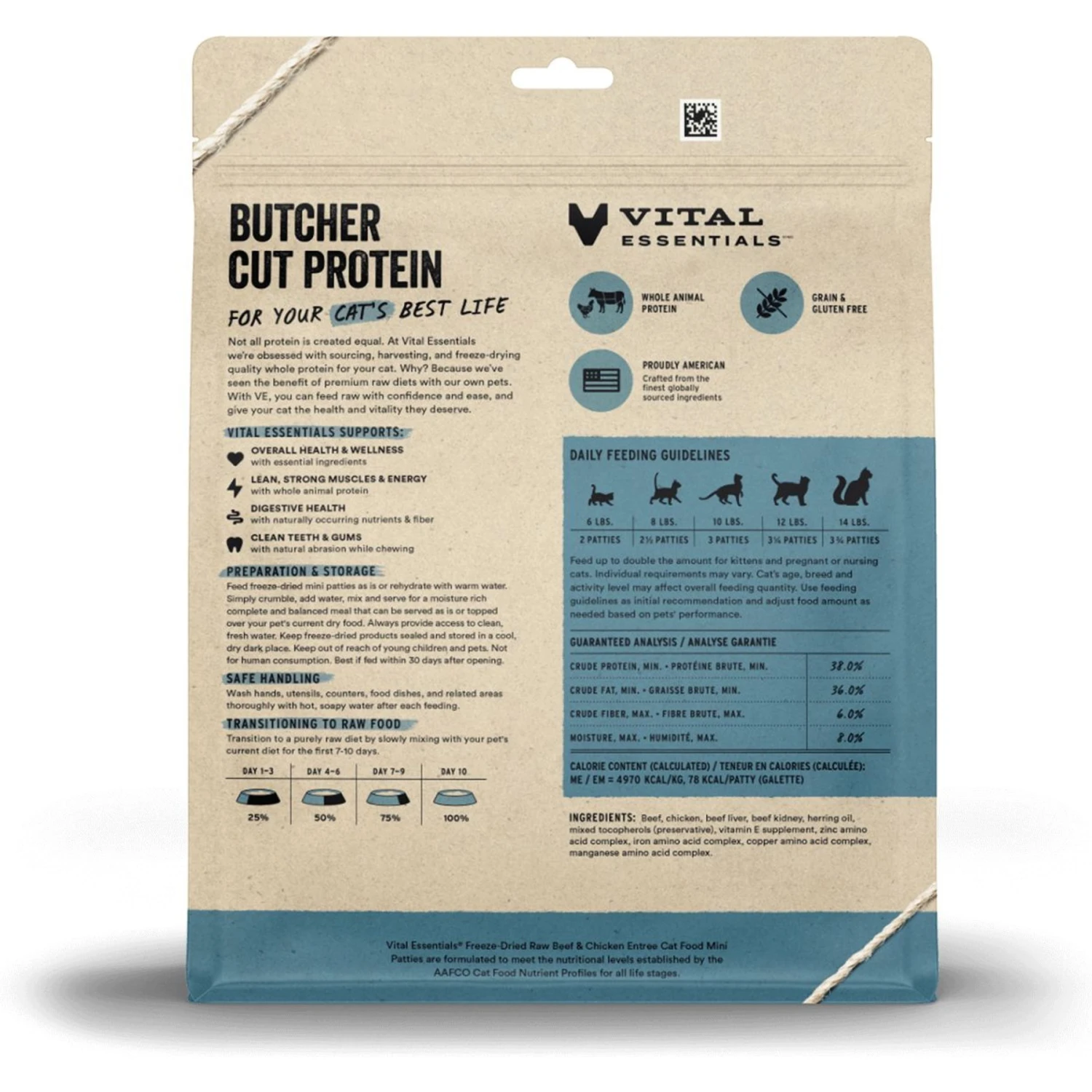 - Vital Essentials Freeze Dried Cat Food packs more protein into every bite than standard, dehydrated cat foods—the complete and balanced Raw Beef & Chicken Entree is purr-fect for your obligate carnivore!