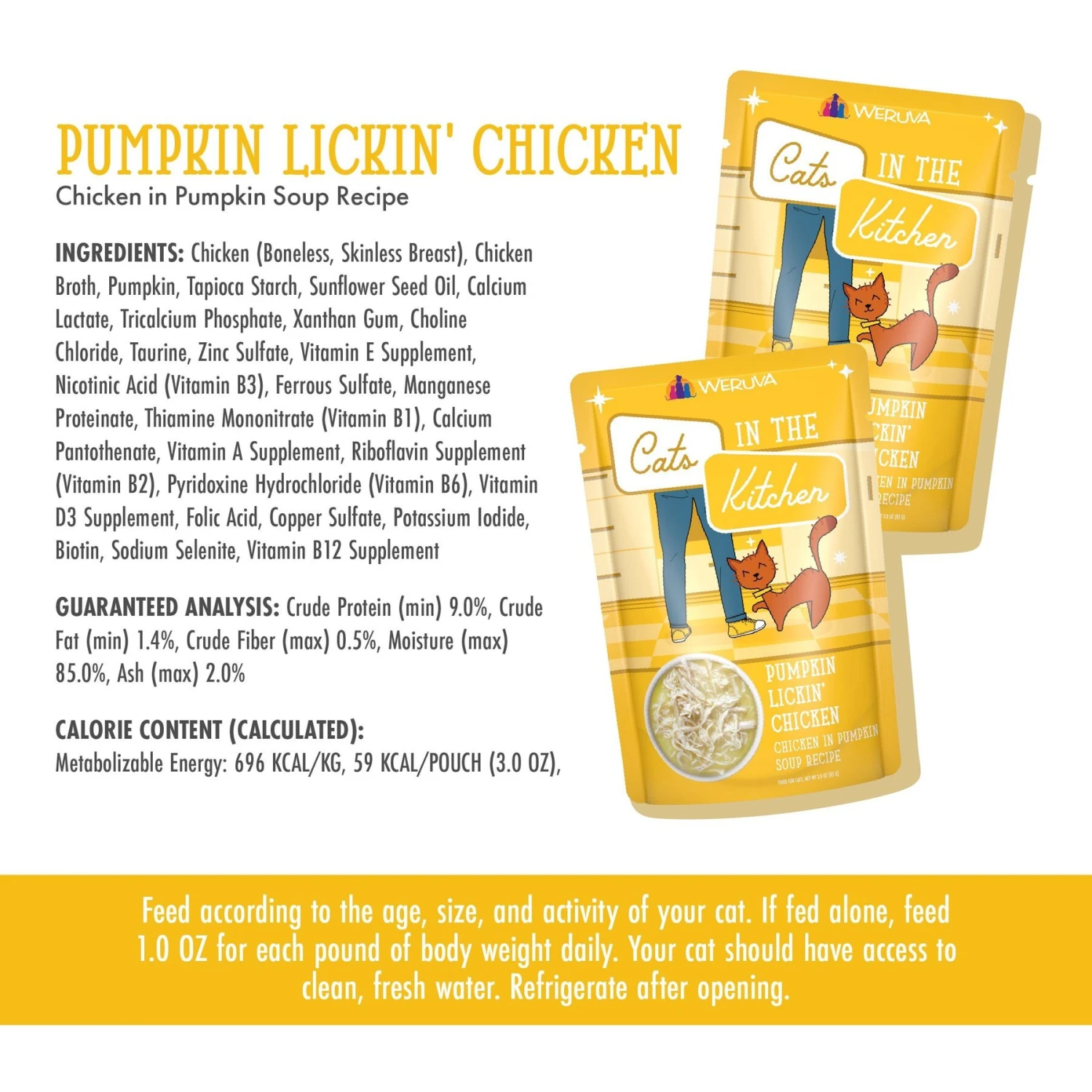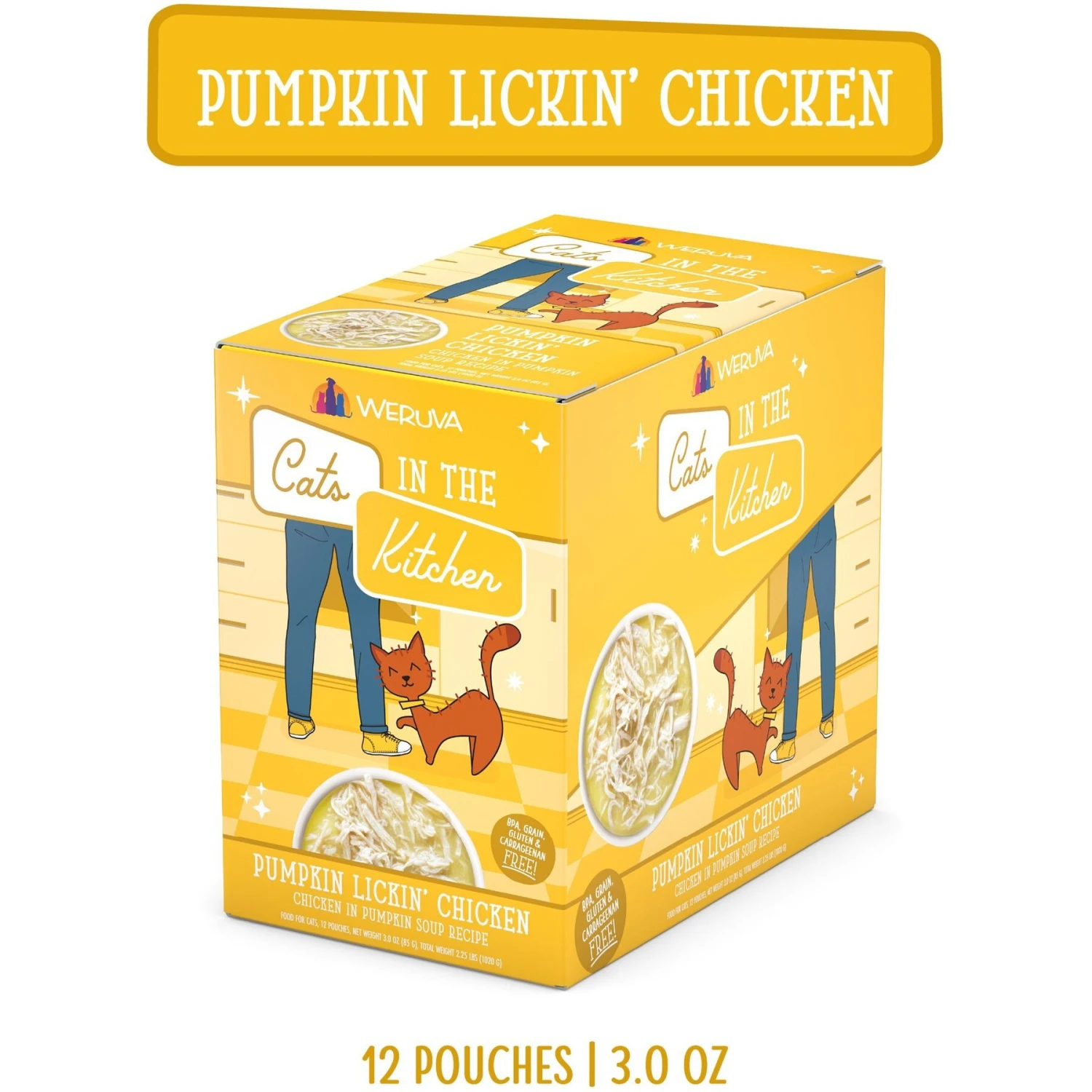Be the first to review “Weruva Cats In The Kitchen Pumpkin Lickin’ Chicken In Pumpkin Soup Grain-Free Cat Food Pouches” Cancel reply