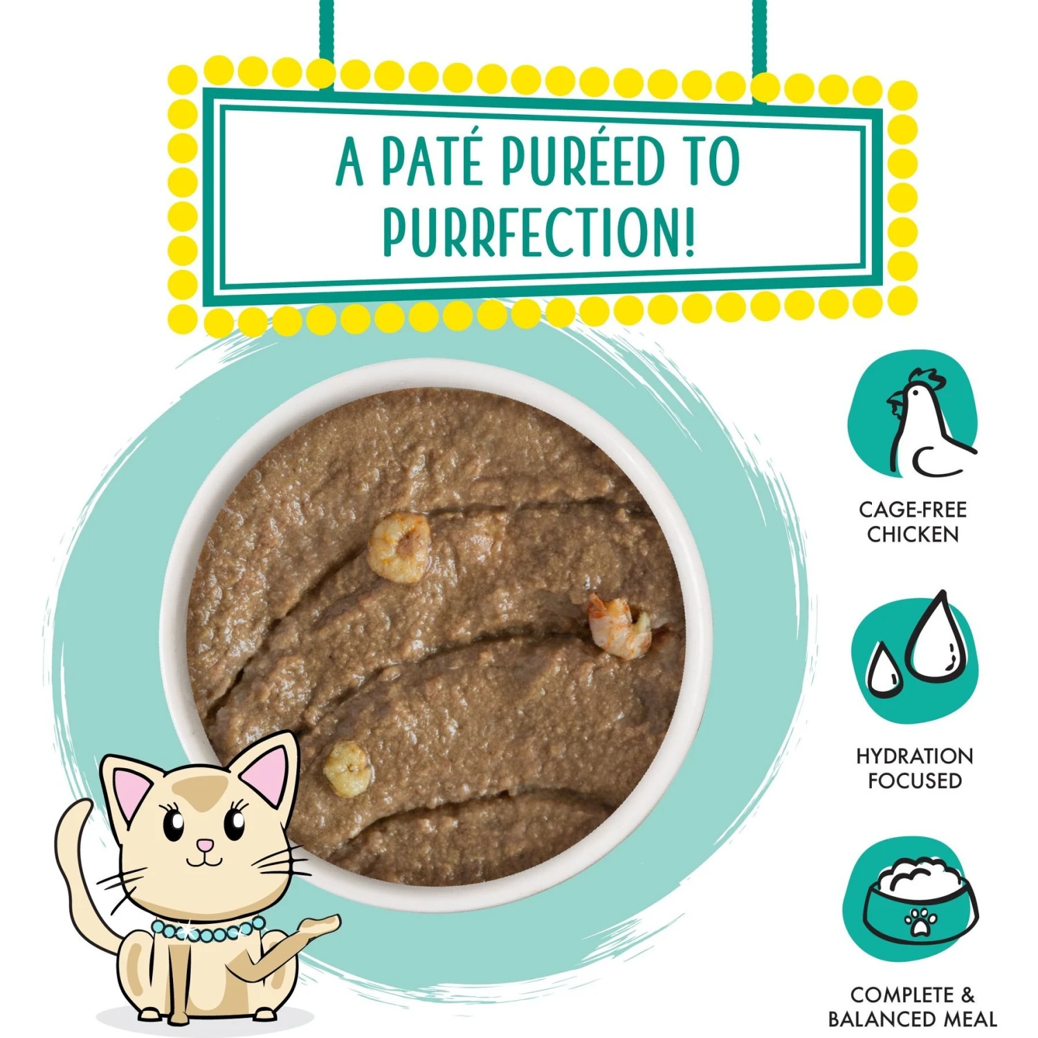 - Chicken and shrimp pureed into an irresistible, paw-fect pate.