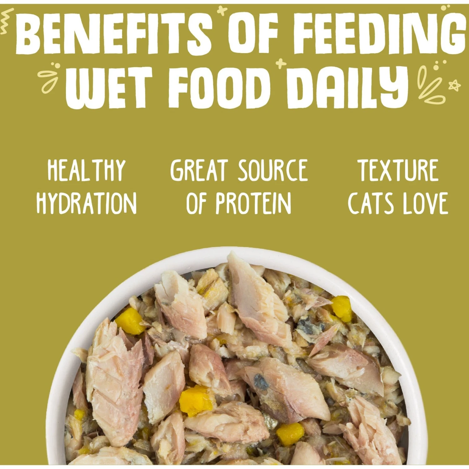 - Grain-free wet food is made with mackerel and pumpkin as the top ingredients so it’s high in protein sourced from real meat.