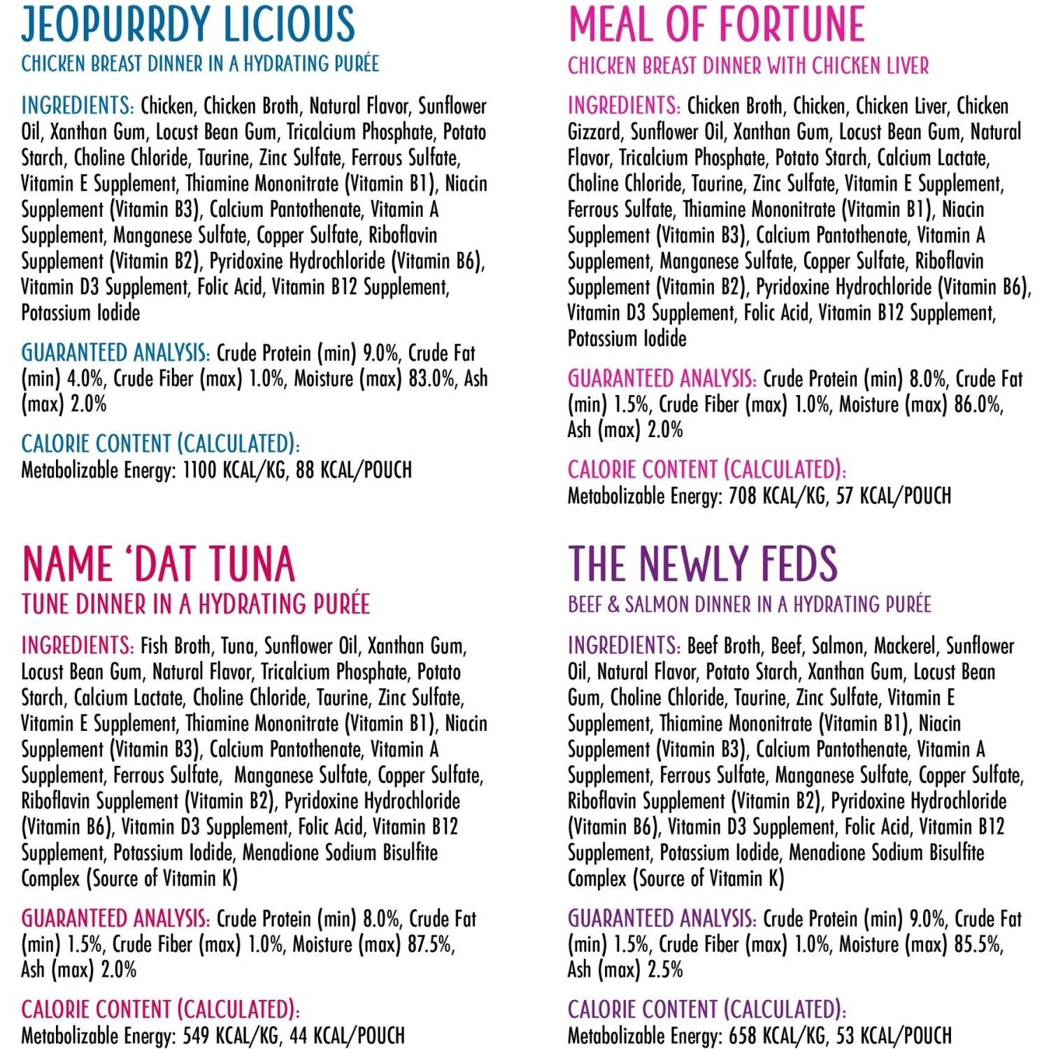 | Flavor | Love Connection, The Showcase Chowdown Pack, Let's Make a Meal, Family Food, Name 'Dat Tuna, Jeopurrdy Licious, The Slice is Right, The Newly Feds, Meal of Fortune |