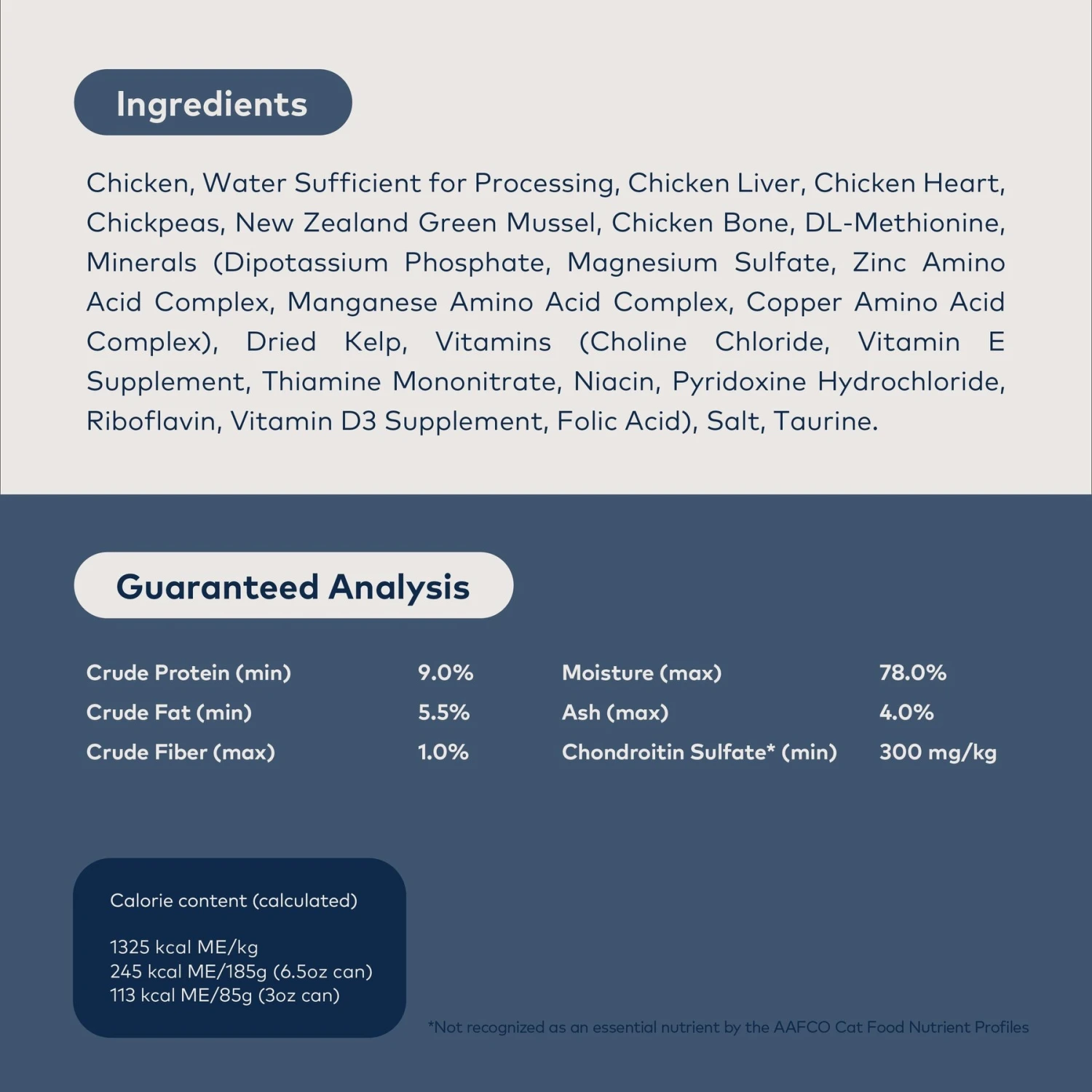 - This single-protein, moisture-rich, chunky pate contains whole-prey ratios of 92% meat, organs, bone, and New Zealand green mussels.